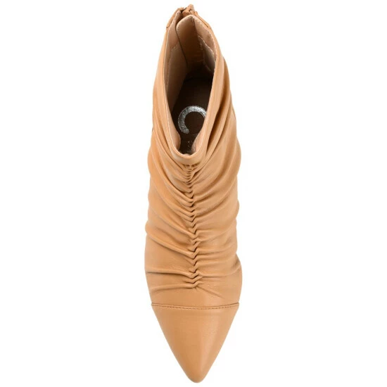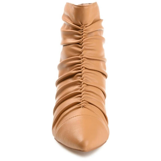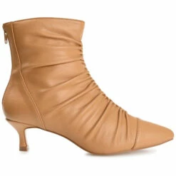 The Chevi bootie by Journee Collection is all about modern simplicity. This pointed-toe silhouette features a low-cut shaft and a center seam detail for a leg-lengthening look. A 4 mm Tru Comfort Foam footbed and a subtle kitten heel complete the look for an oh-so-walkable lift. At Journee Collection, our booties will give you that comfortable yet stylish look, perfect for when you’re in the office all the way to a fun night out with the girls.
