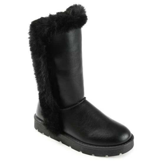 A loungy statement every wardrobe needs, the Cleeo boot by Journee Collection. This round-toe silhouette is rendered with super soft vegan leather with a warm faux fur lining. A 4 mm Tru Comfort Foam insole makes them super supportive, and a thick sole provides durability. At Journee Collection, our boot styles will have your outfit looking even better than before. They will give you that finishing touch that will have your outfit looking straight out of a magazine.