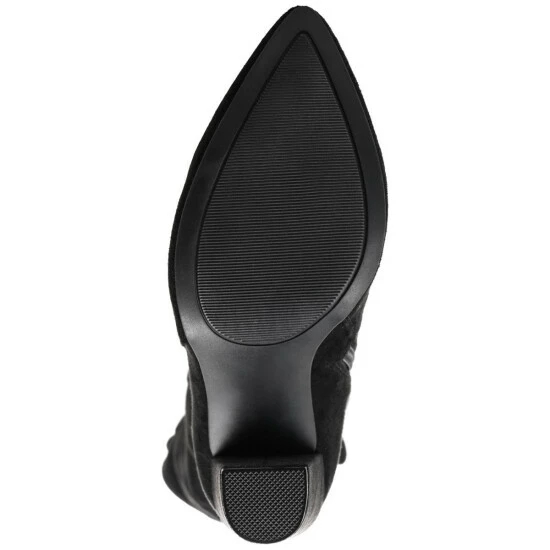 You couldnโt ask for a more glamourous boot for fall than the Dominga by Journee Collection. This bold beauty is rendered with stretchy vegan leather and a super comfy 4 mm Tru Comfort Foamโข footbed for extra support. A covered block heel creates the perfect height, and a high-low topline adds an edgy finish to this almond-toe silhouette. At Journee Collection, our boot styles will have your outfit looking even better than before. They will give you that finishing touch that will have your outfit looking straight out of a magazine.