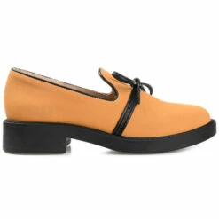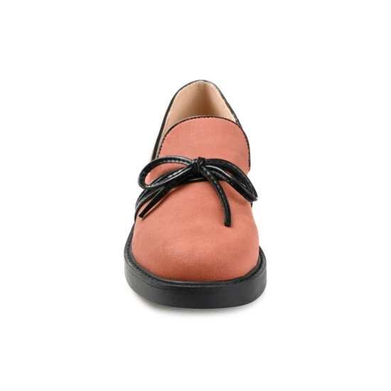 Kick your day off with a retro vibe in the Eilien by Journee Collection. This vegan leather loafer gives any outfit a charming finish with a round-toe and notches at the topline. A Tru Comfort Foamโข footbed and a low block heel perfect this comfortable yet classy look. Medium width.