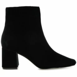 With the Hazara booties by Journee Collection, you can instantly upgrade any look. The velvet fabric on the uppers and a square toe make this bootie an effortlessly stylish look. A zipper opening makes them easy to pull on, and a block heel combined with a 4 mm Tru Comfort Foam™ footbed makes walking in them a delight. At Journee Collection, our booties will give you that comfortable yet stylish look, perfect for when you’re in the office all the way to a fun night out with the girls.