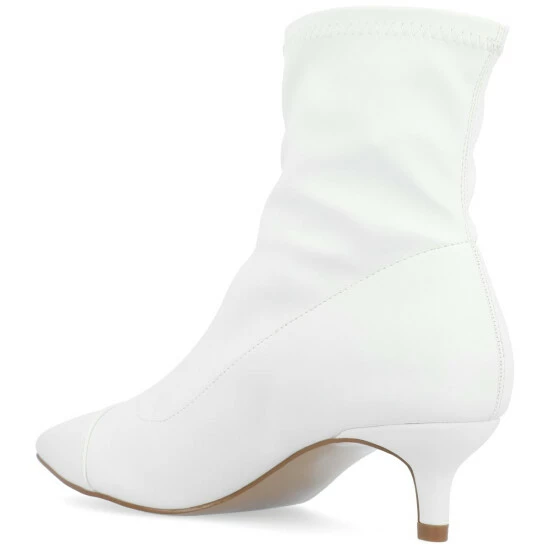 A style that’s certain to make everyone you pass do a double take, the Jadde booties by Journee Collection. This pointed-toe bootie is the definition of sleek, thanks to the kitten heel and sock-inspired stitch details. A 4 mm Tru Comfort Foam footbed and stretchy vegan leather make them super comfy. At Journee Collection, our booties will give you that comfortable yet stylish look, perfect for when you’re in the office all the way to a fun night out with the girls.