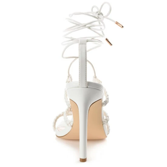 Prepare to impress in the Jamila heel by Journee Collection. This statement piece offers style and comfort with luxe vegan leather uppers and a 4 mm Tru Comfort Foamβ’ insole. Braided straps and a caged tie-up detail top the design for a bold finish.