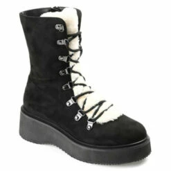 Cold weather booties with cool vibes, the Kannon by Journee Collection. This platform bootie is as functional as it is stylish with a 5mm Tru Comfort Foamโข insole and warm faux fur accent. With soft vegan leather materials, metal eyelets, and a lace-up detail, you can boldly finish any outfit. Medium width.