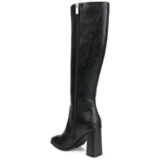 A must-have for any closet, the Karima by Journee Collection. This knee-high boot features a square-toe, a 4 mm Tru Comfort Foamโข footbed, and soft vegan leather detailed with a smooth zipper entry. A stacked block heel gives this simple silhouette a fresh new look. At Journee Collection, our boot styles will have your outfit looking even better than before. They will give you that finishing touch that will have your outfit looking straight out of a magazine.