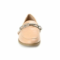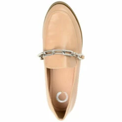 A girl boss look that leaves an impression. The Madison loafer flat by Journee Collection features soft vegan leather materials and a Tru Comfort Foamโข footbed that offer all-day comfort and support. A tiny block heel, apron detail, and chain strap at the vamp boldly finish this classic style. Medium width.