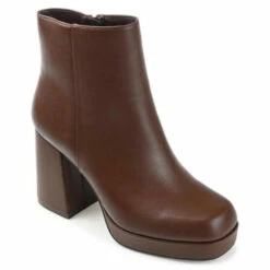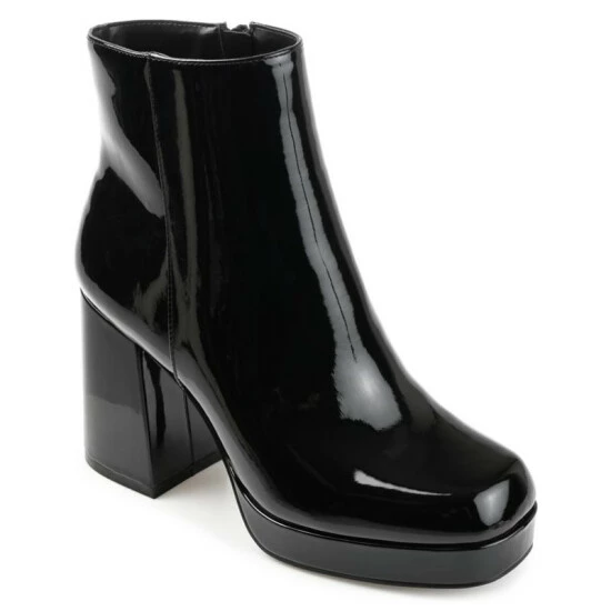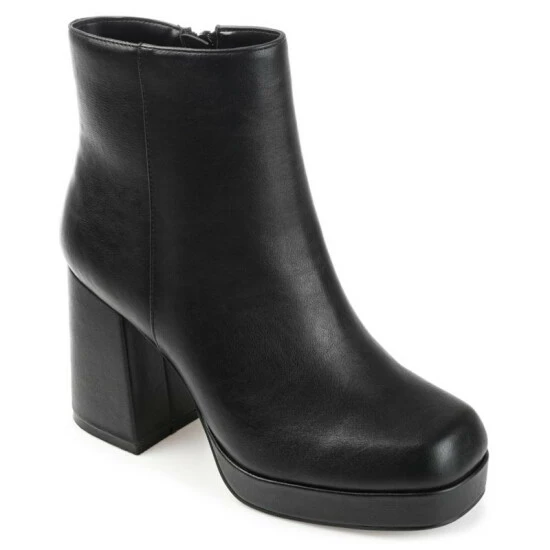 These booties are a fashion-forward statement for fall. This platform silhouette features soft vegan leather and a 4 mm Tru Comfort Foamโข insole for a comfy fit. The inside zipper, high ankle shape, and square-toe add a 90s vibe to any look. At Journee Collection, our booties will give you that comfortable yet stylish look, perfect for when youโre in the office all the way to a fun night out with the girls.