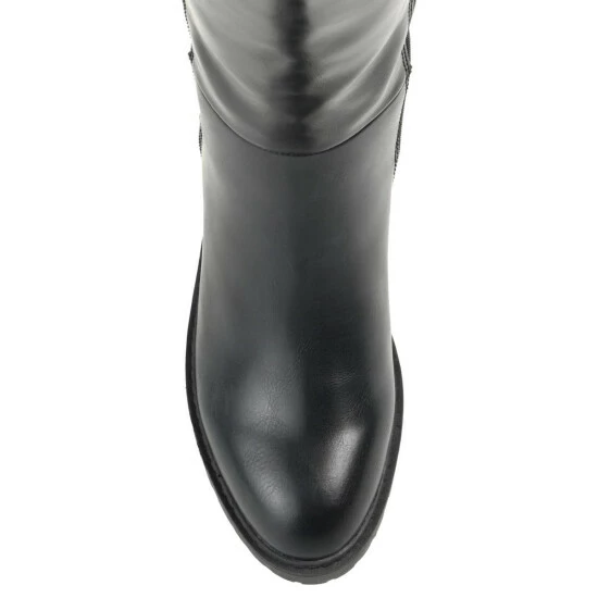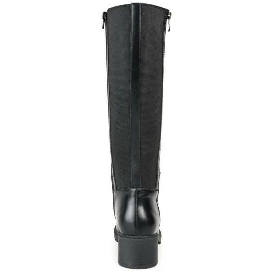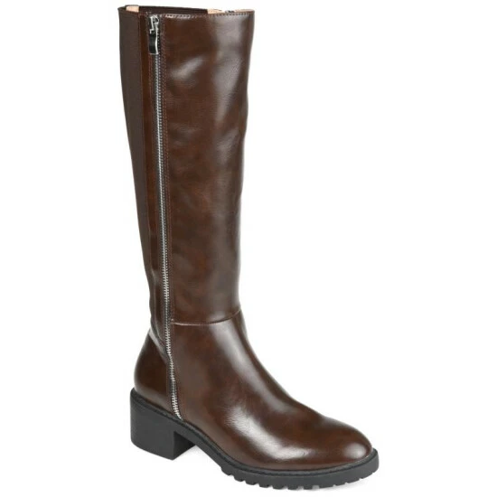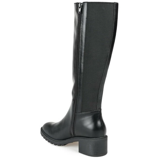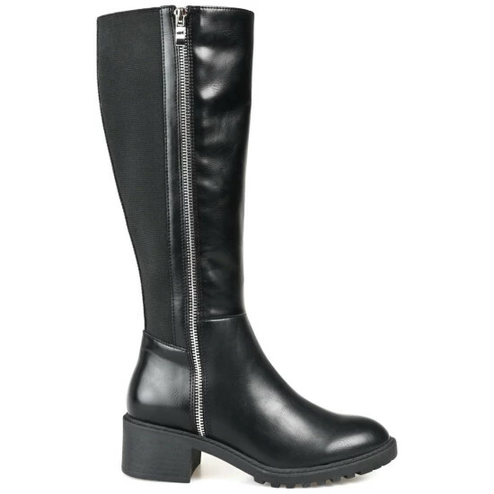 Complete any outfit with the Morgaan by Journee Collection. An almond-toe and a zipper detail give this basic boot a bold look. This knee-high silhouette features a 4 mm Tru Comfort Foam™ insole, vegan leather, and a low block heel. At Journee Collection, our boot styles will have your outfit looking even better than before. They will give you that finishing touch that will have your outfit looking straight out of a magazine.
