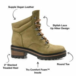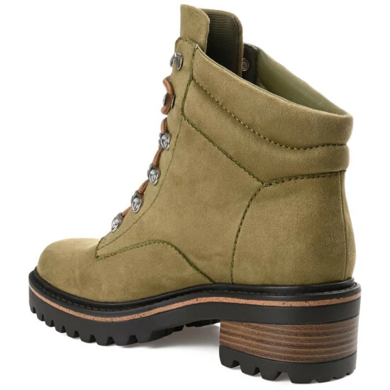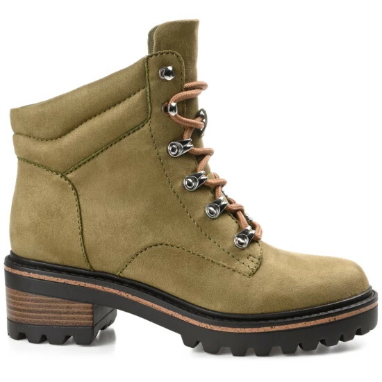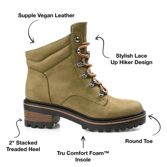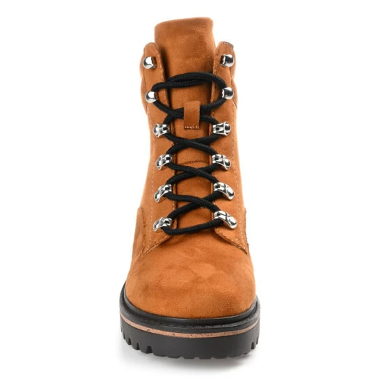 The Nyia bootie by Journee Collection is destined to take you places. This trendy hiker-styled bootie features vegan leather with a cushioned collar and a 4mm Tru Comfort Foam™ insole. A lace-up design with metal hardware will hold you in tightly, and a treaded outsole with a wood inset detail elevates the look. Medium width.