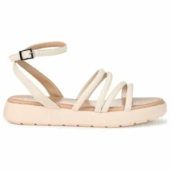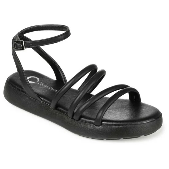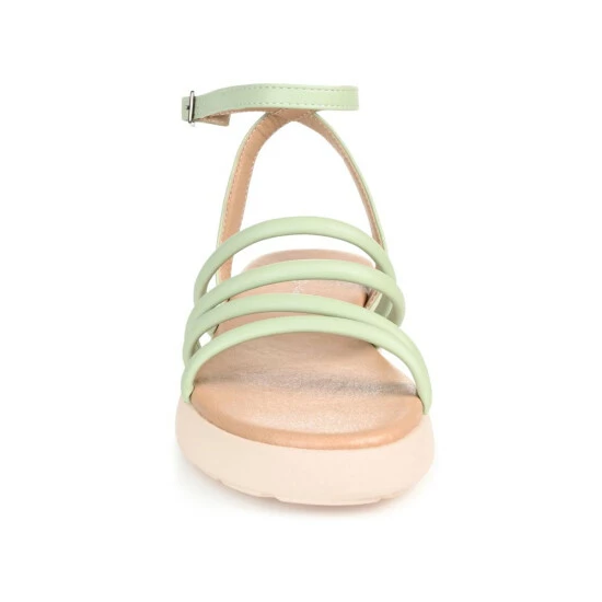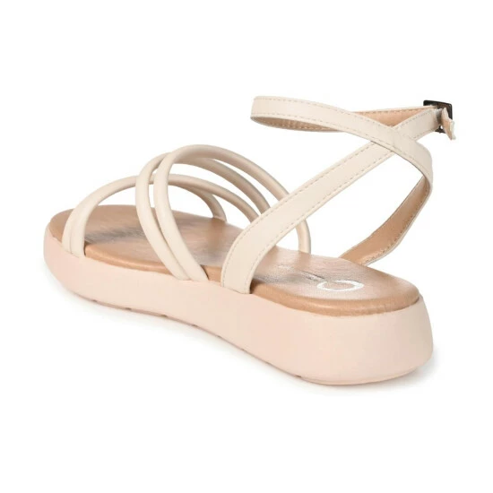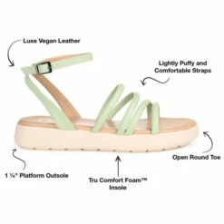 The Palomma sandal by Journee Collection is perfect for those fun days in the sun. This medium width, modern style features a wraparound buckle strap and puffed vegan leather straps at the toe. A Tru Comfort Foamโข lines the insole for extra comfort, and a thick white sole adds retro charm to the design.