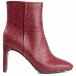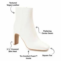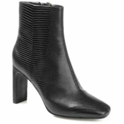 Super cute and super versatile, the Sarla by Journee Collection. These square-toe booties feature lizard textured vegan leather uppers detailed with a retro center seam. A 4 mm Tru Comfort Foamโข insole makes them comfortable to walk in, and an inside zipper makes them easy to slip on.