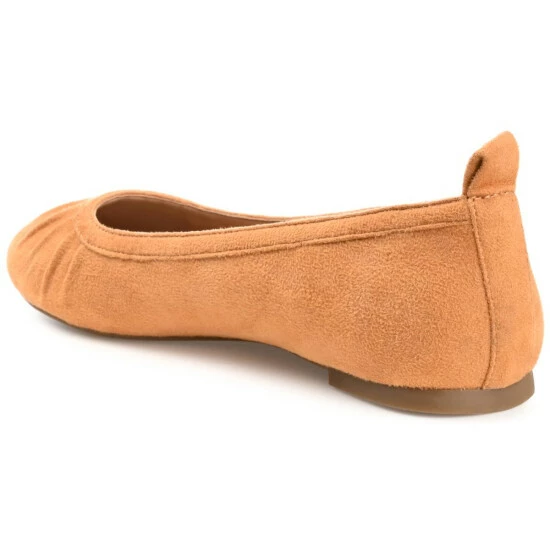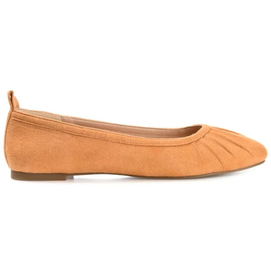 Darling details define the Tannya flat by Journee Collection. These medium width versatile ballet flats feature vegan leather materials sitting on a Tru Comfort Foamโข insole for extra comfortable wear. Classic round toes and a contemporary ruched design at the top finish this eye-catching style that looks great dressed up or down.