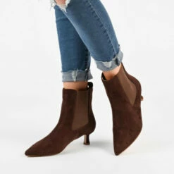 So easy and stylish, the Tenlee bootie by Journee Collection is sure to become a favorite go-to. This pointed-toe bootie is effortlessly stylish thanks to its chelsea stretch details and kitten heel. Soft vegan leather shapes the look and a 4 mm Tru Comfort Foam footbed offers long-lasting support. At Journee Collection, our booties will give you that comfortable yet stylish look, perfect for when youโre in the office all the way to a fun night out with the girls.