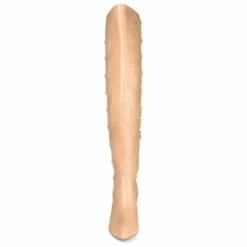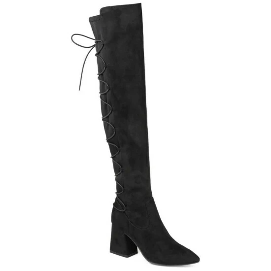 The Valorie boots by Journee Collection aren’t your ordinary shoes. This thigh-high boot features a pointed-toe, a 4 mm Tru Comfort Foamโข footbed, and soft vegan leather detailed with a forgiving stretch gore accent. A covered block heel and a back-lace design give this versatile style a modern touch. At Journee Collection, our boot styles will have your outfit looking even better than before. They will give you that finishing touch that will have your outfit looking straight out of a magazine.