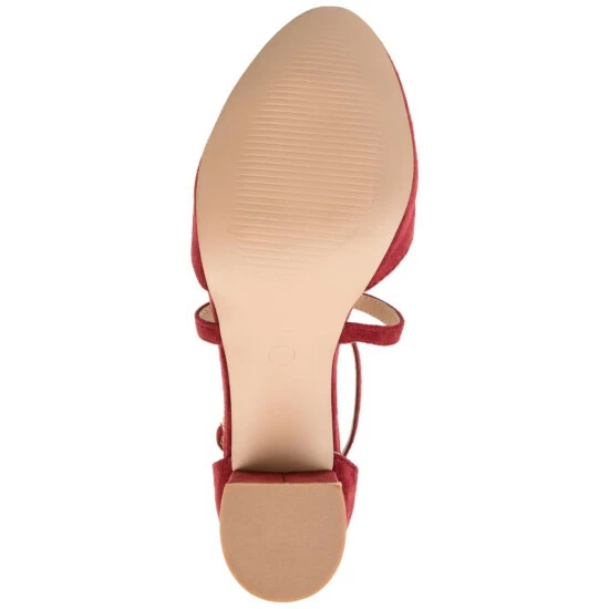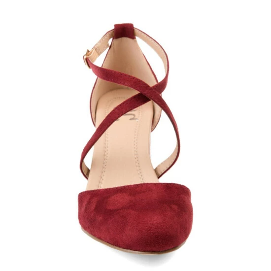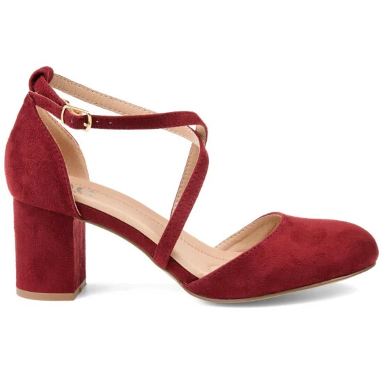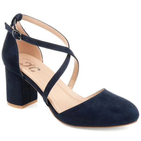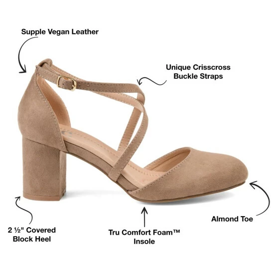 The Foster by Journee Collection is a classic with a twist. This almond-toe d’Orsay is topped with a crisscrossed buckled strap detail. Soft micro suede uppers and a wide-width footbed with a Tru Comfort Foamโข insole finish the look.