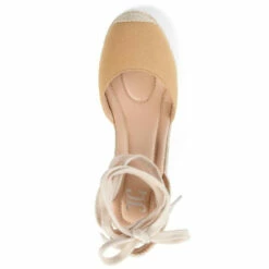 - Lace-up, ankle wrap, espadrille wedge heel, open back