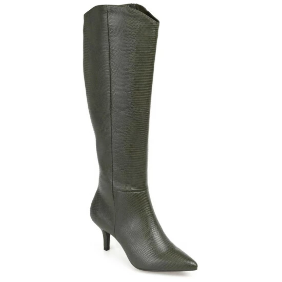 You’re sure to catch compliments and turn heads in the Estrella by Journee Collection. This vegan leather boot is styled with an inside zipper and a pointed toe for a modern look. A 4 mm Tru Comfort Foam insole an extra-wide calf complete the design for a comfortable fit. At Journee Collection, our boot styles will have your outfit looking even better than before. They will give you that finishing touch that will have your outfit looking straight out of a magazine.