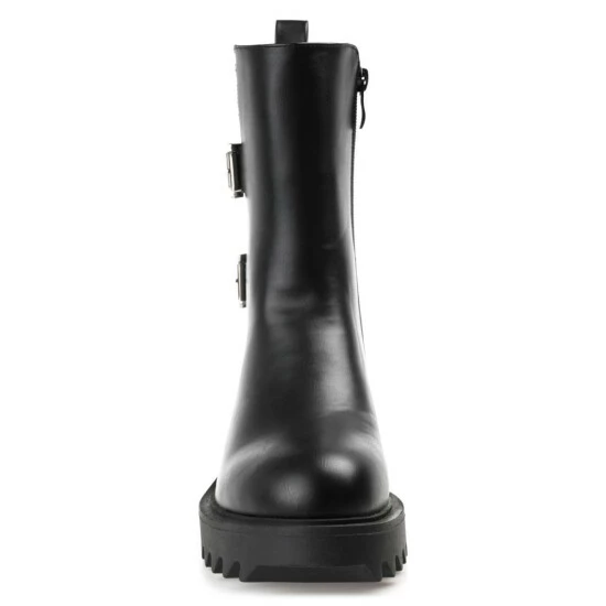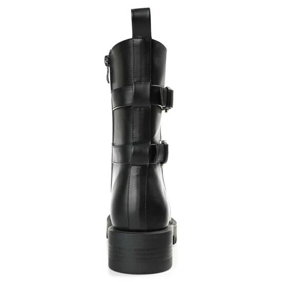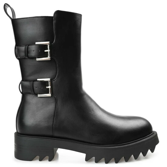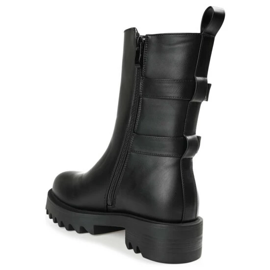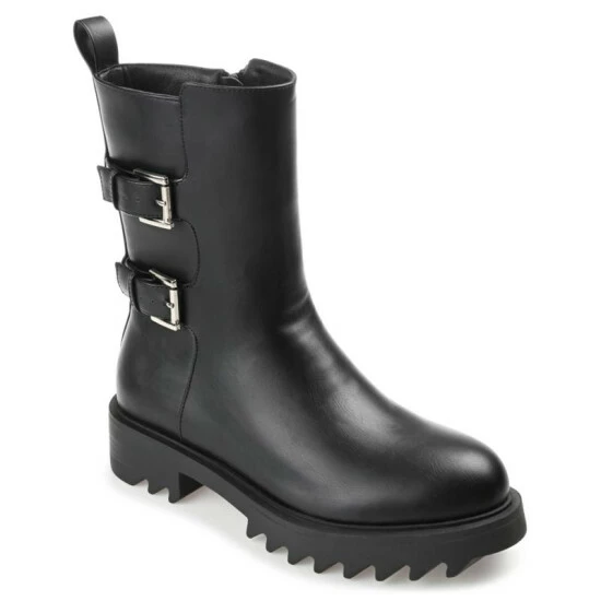 Twin buckles boldly detail this classic combat for a fresh take. The Yasmine bootie by Journee Collection features a supportive high-ankle design shaped with soft vegan leather and a 4 mm Tru Comfort Foamโข insole. A chunky tractioned sole adds a bit of height to the look. At Journee Collection, our booties will give you that comfortable yet stylish look, perfect for when youโre in the office all the way to a fun night out with the girls.