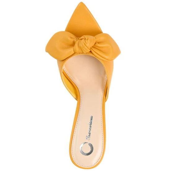 Perfect for special occasions, the Zelah by Journee Collection always makes a statement. This slip-on silhouette features soft vegan leather finished with a bow accent at the toe. A bold stiletto heel and an oh-so-soft Tru Comfort Foamโข insole elevate the look. Medium width.