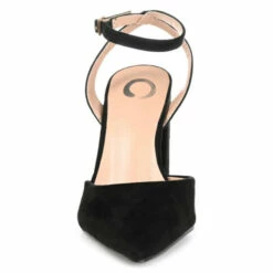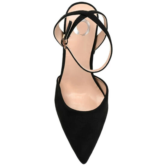 A simple heel that somehow manages to make a big statement. This pointed-toe silhouette offers comfort and style thanks to the padded insole and soft vegan leather. A covered block heel elevates the look, and an ankle strap tops the design. At Journee Collection, our pump styles will let you go from a fun night out with the girls to kicking back and relaxing at the end of the night without any trouble.