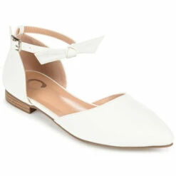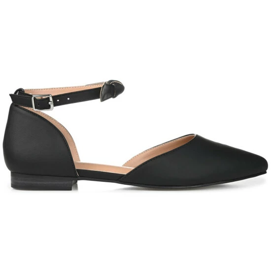 A design inspired by 1950s fashion that only gets better with time. The Vielo by Journee Collection is a classic mix-and-matchable d’Orsay flat detailed with a pointed toe and cuff at the heel. This vegan leather silhouette by Journee Collection is thoughtfully finished with a darling buckle strap topped with a bow accent. At Journee Collection, our flat styles will have you looking just as professional as the boss at work to having the cutest shoes when you go out for the night.