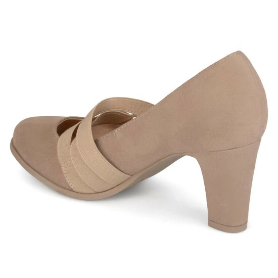A vintage silhouette with a fresh update; it’s the Loren by Journee Collection. These classic pumps feature soft vegan suede uppers topped with triple elastic strap details. Comfort insoles and a wide-width footbed create a comfortable fit.