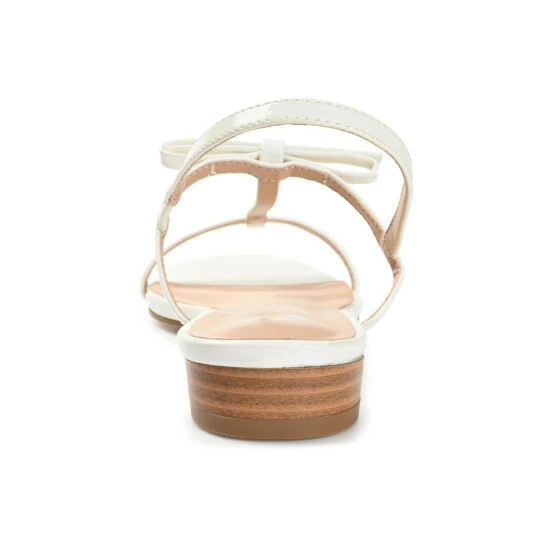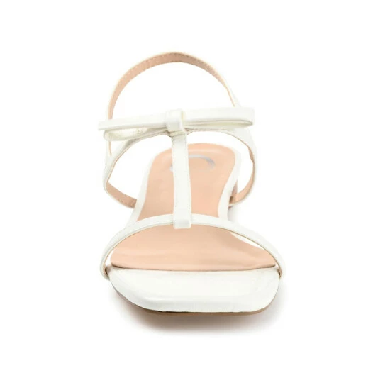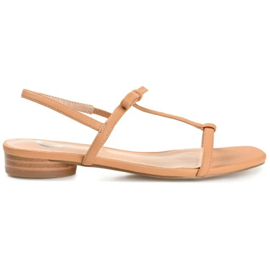 The Zaidda by Journee Collection is a sleek look for summer. This medium width T-strap sandal features soft vegan leather and a padded insole for the perfect fit. A retro slingback strap and bow accent finish the design for an elevated finish.